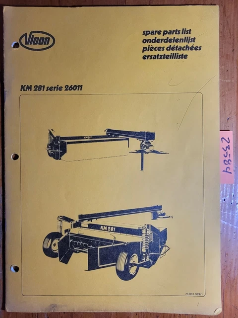 Vicon Cm240 Series 14039 Disc Mower Parts Manual 70 003 561 1 Ebay